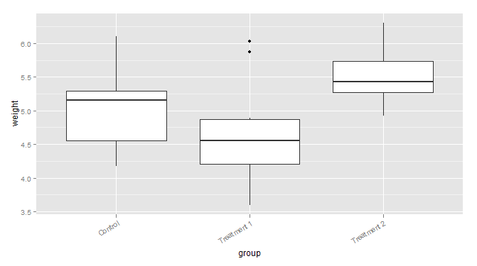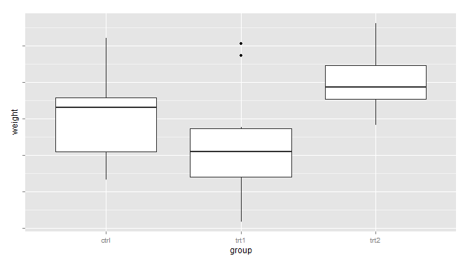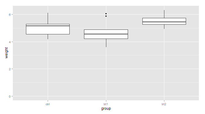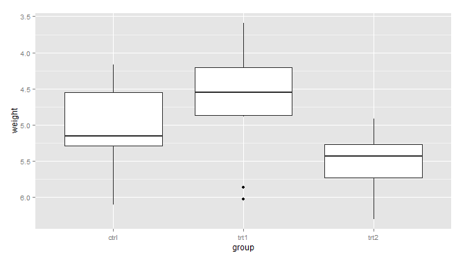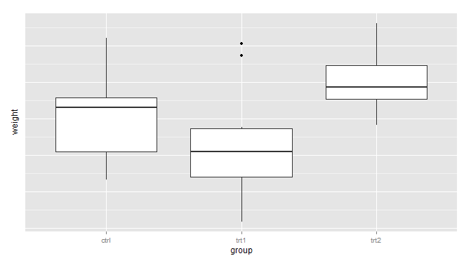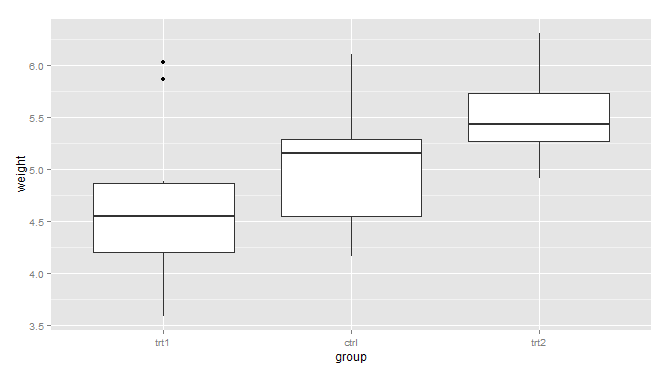 bp <- ggplot(plantgrowth, aes(x=group, y=weight)) + geom_boxplot() +