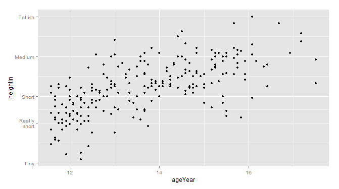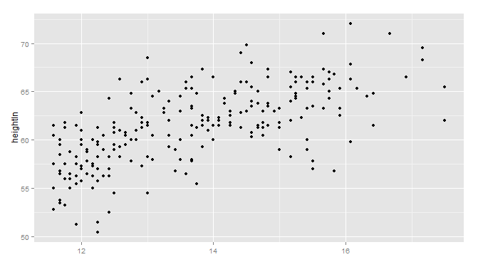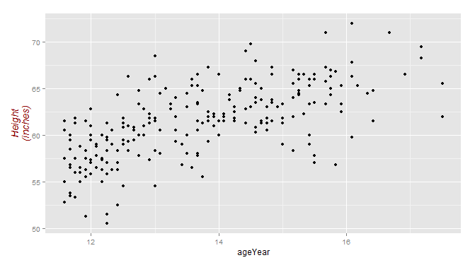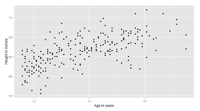 hwp <- ggplot(heightweight, aes(x=ageyear, y=heightin)) +