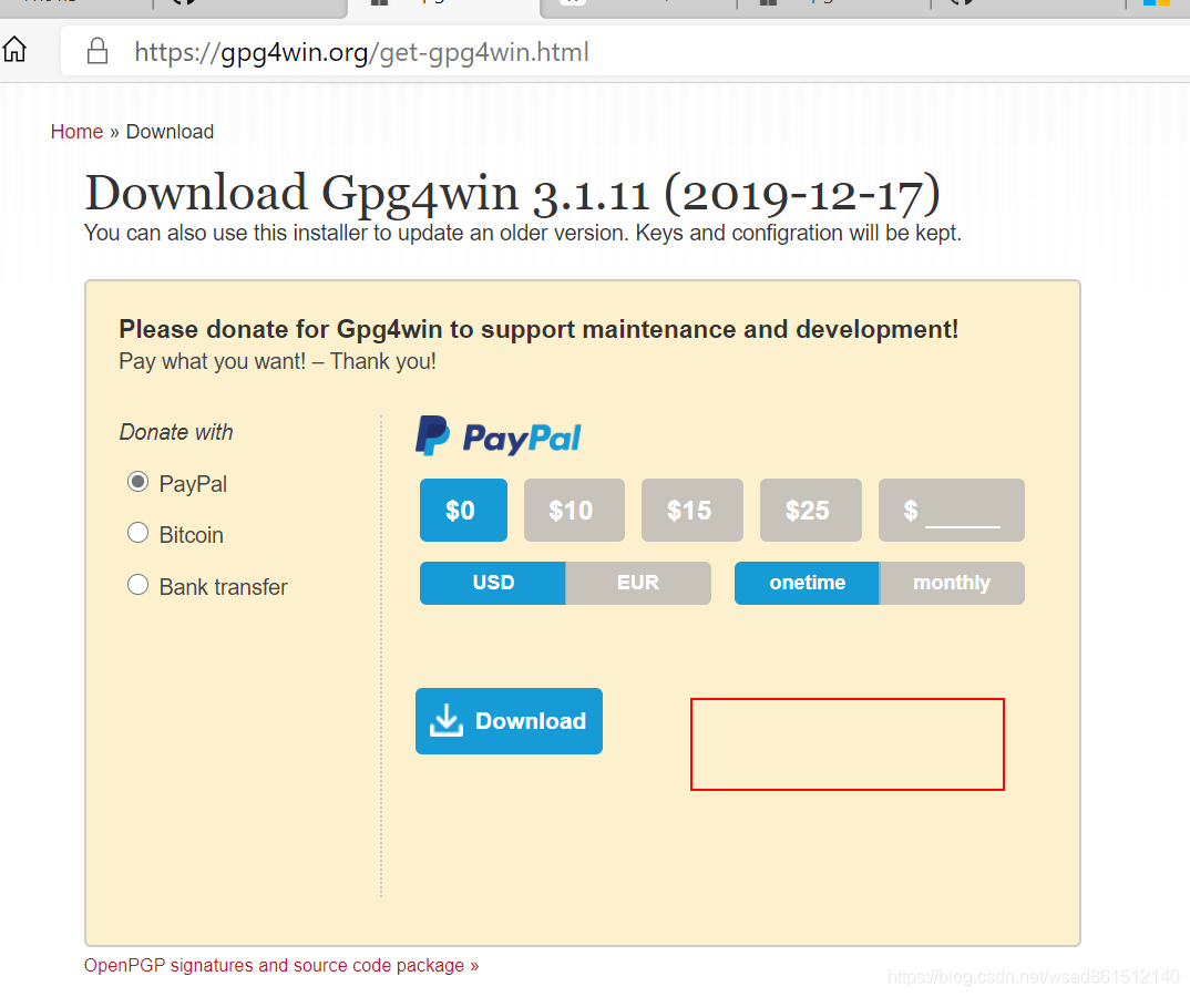 第一步肯定就是通过 gpg 生成密钥对了。这时候需要到一个 gnupg 软件,ok,去下载:🔐gnupg。其实 git fot windows 自带一个 gpg 命令行程序,但是命令行用多了,还是上 gui 愉快点吧,我们选择使用带 gui 的 gpg4win🔗。