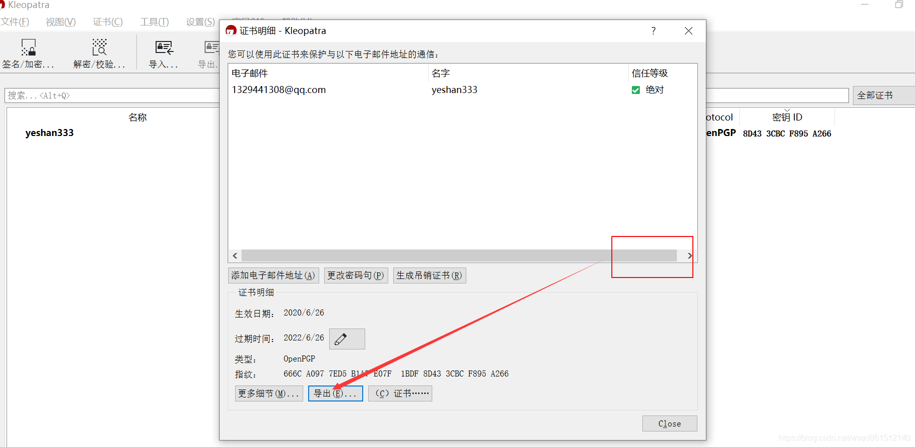 好了,密钥对生成完毕。下一步,就是把把公钥放到 github 上,让 github 对我们的提交进行验证,判断是否该给 commit “戴”上小绿标。[获取公钥:鼠标右键->细节->导出]、[github 添加公钥:settings->ssh and gpg keys]。