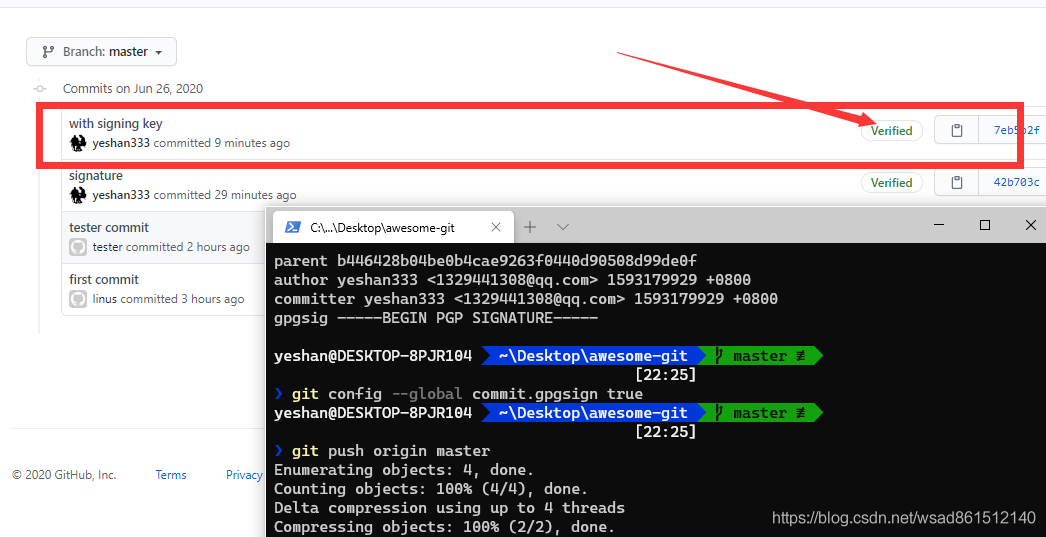 再看下对 commit 签名后是怎么样的: