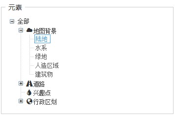 创建完样式规则后,需要选择要修改的地图元素。目前可以修改的地图元素包括如下几种:
