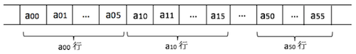 同样,当二维数组 a[6][6] 按照行序为主的次序顺序存储时,数组在内存中的存储状态如图 2 所示: