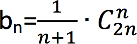 通过对公式一步步的数学推算,最后得出,含有 n 个结点的不相似的二叉树的数量为: